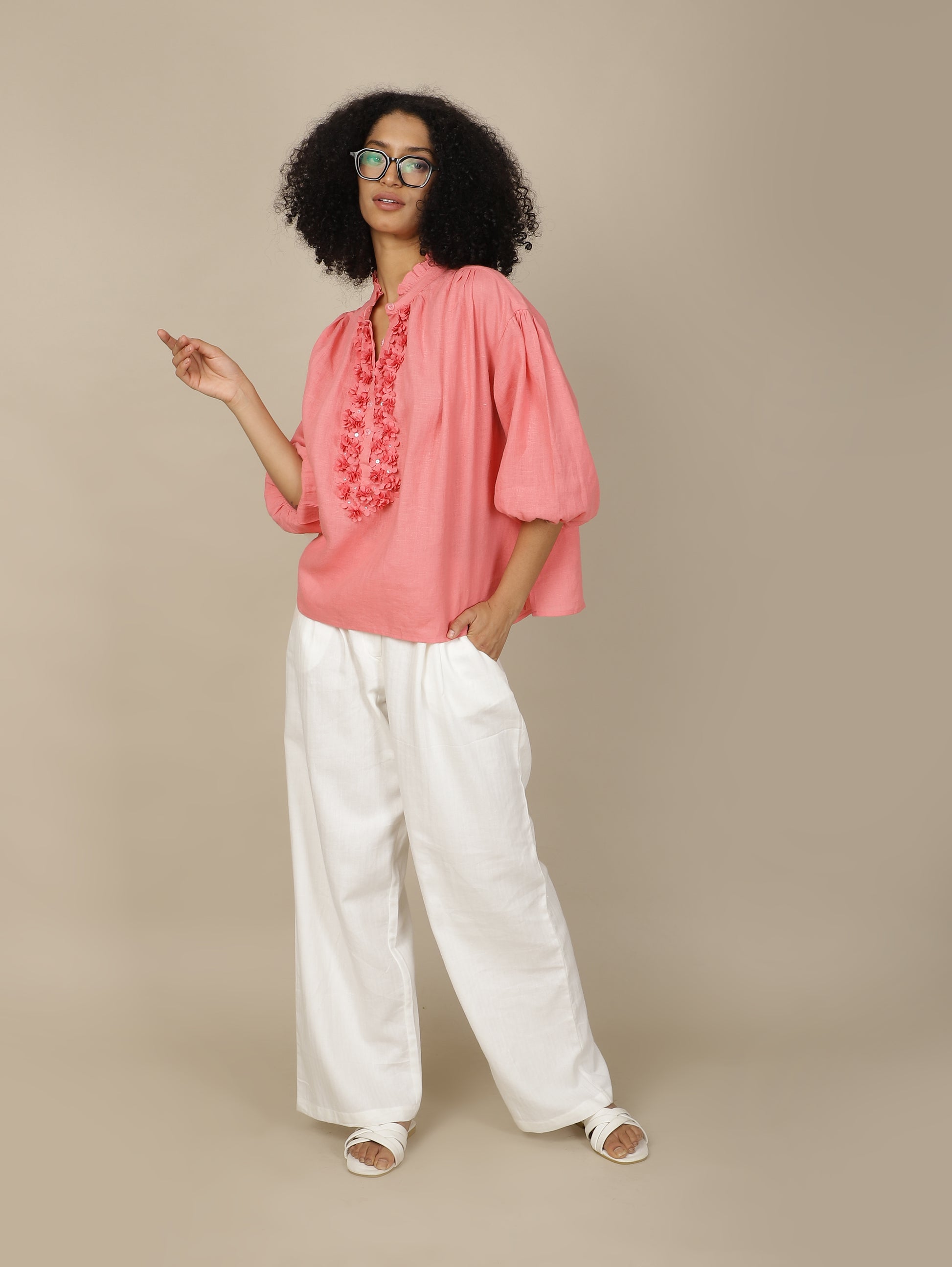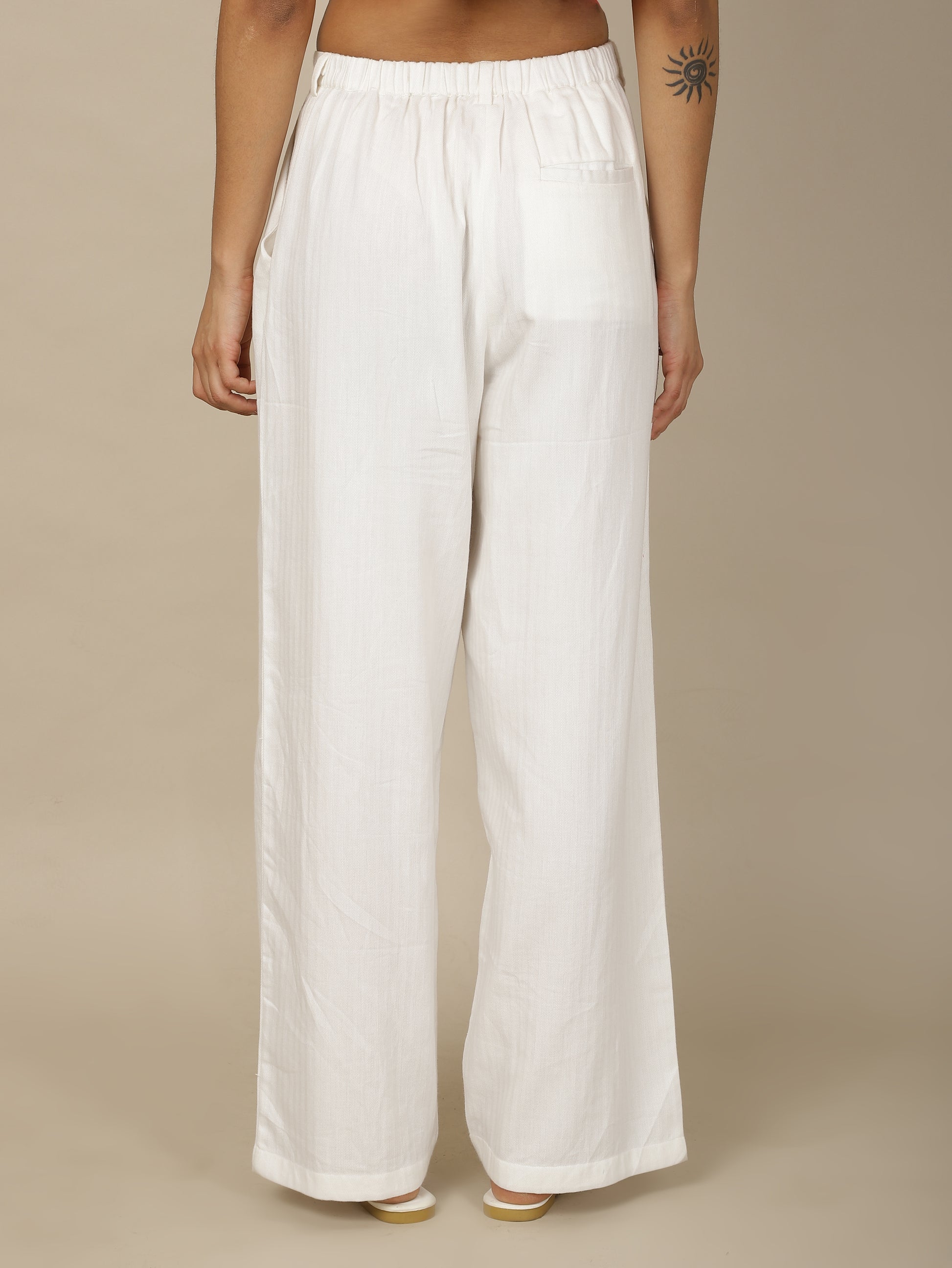 In textured cotton, the Cotton-cloud Straight Pant—our absolute favorite—is an effortless button front, elasticated back-waist style with wide legs and pockets on the side.