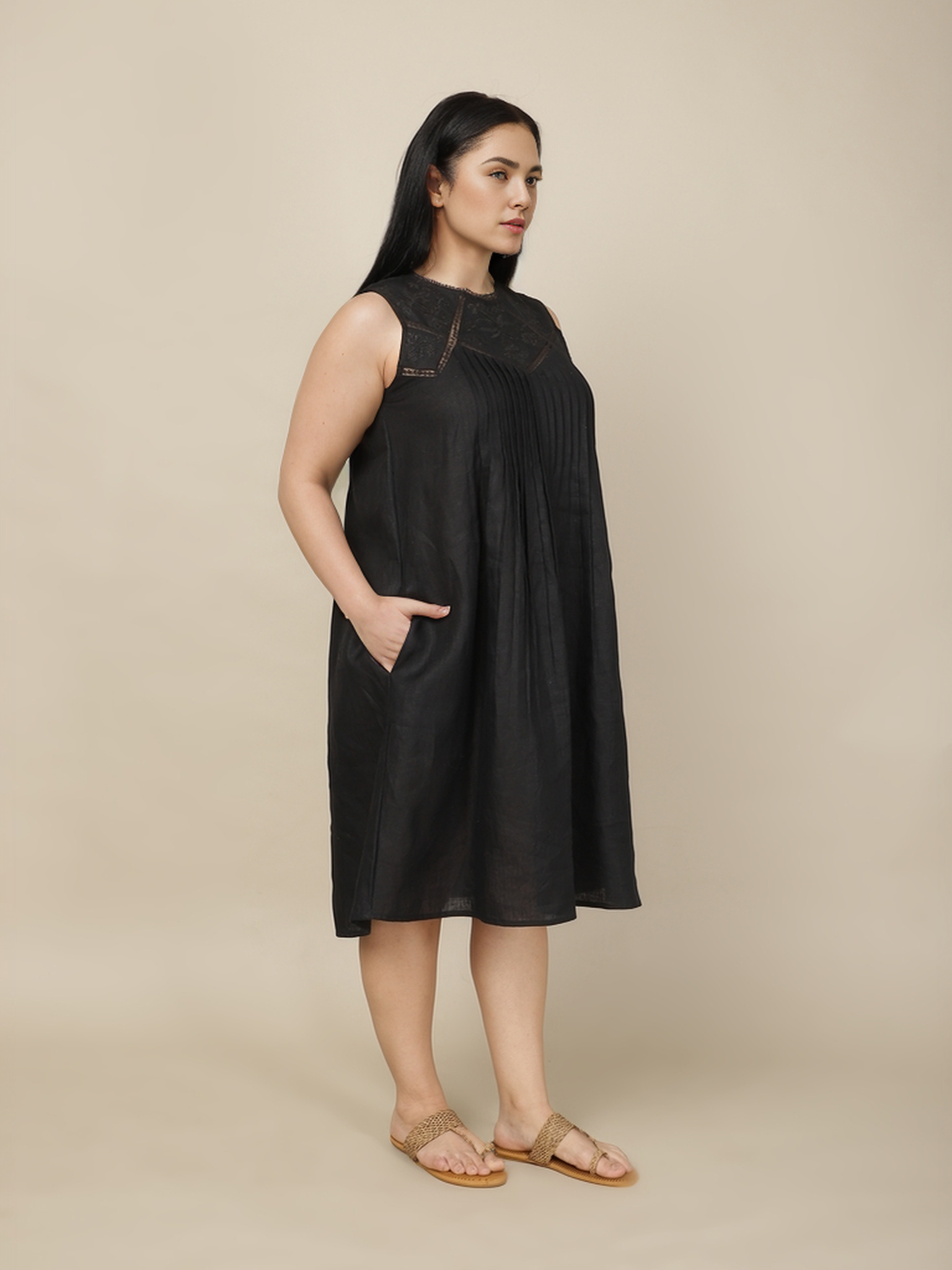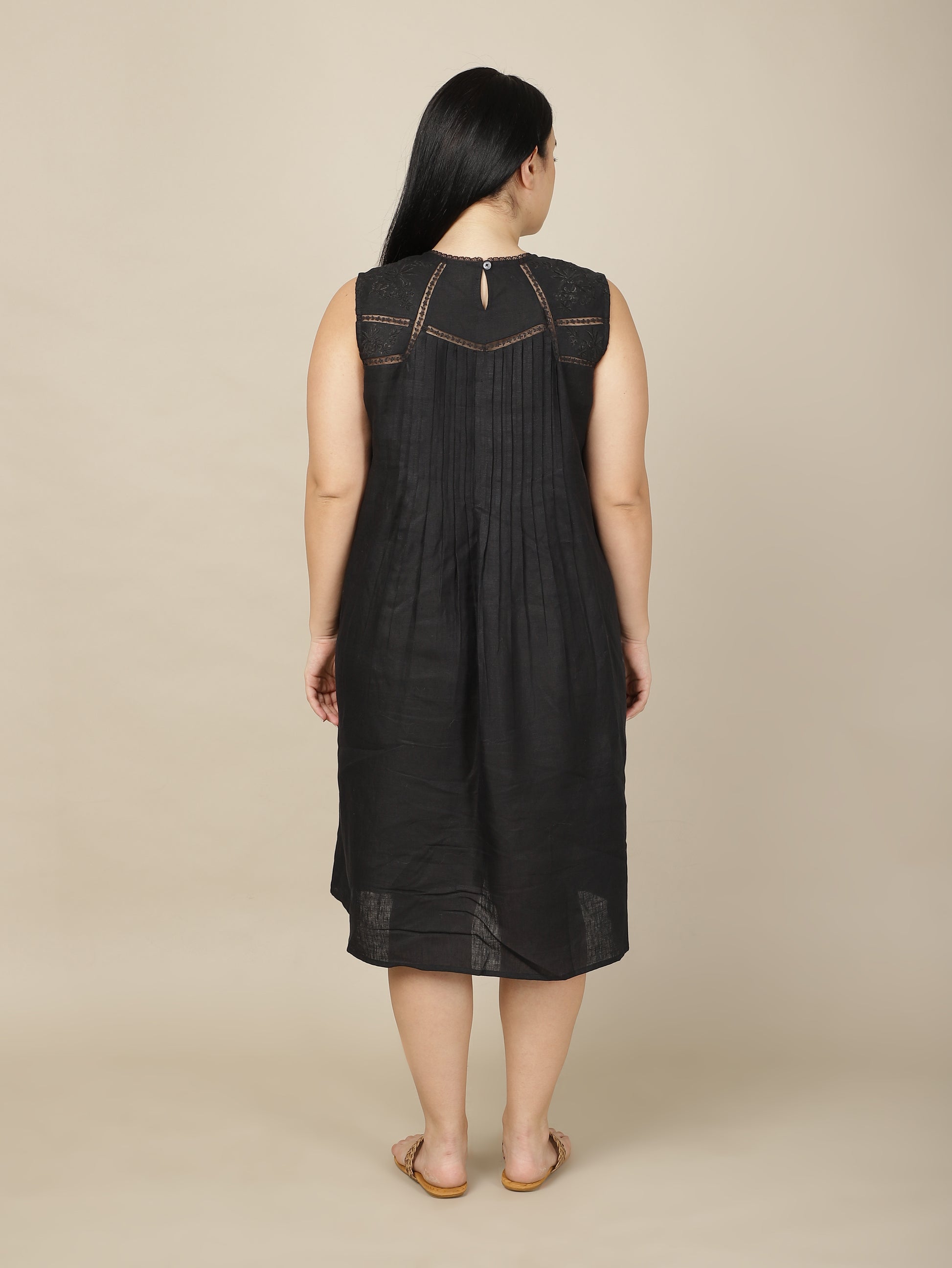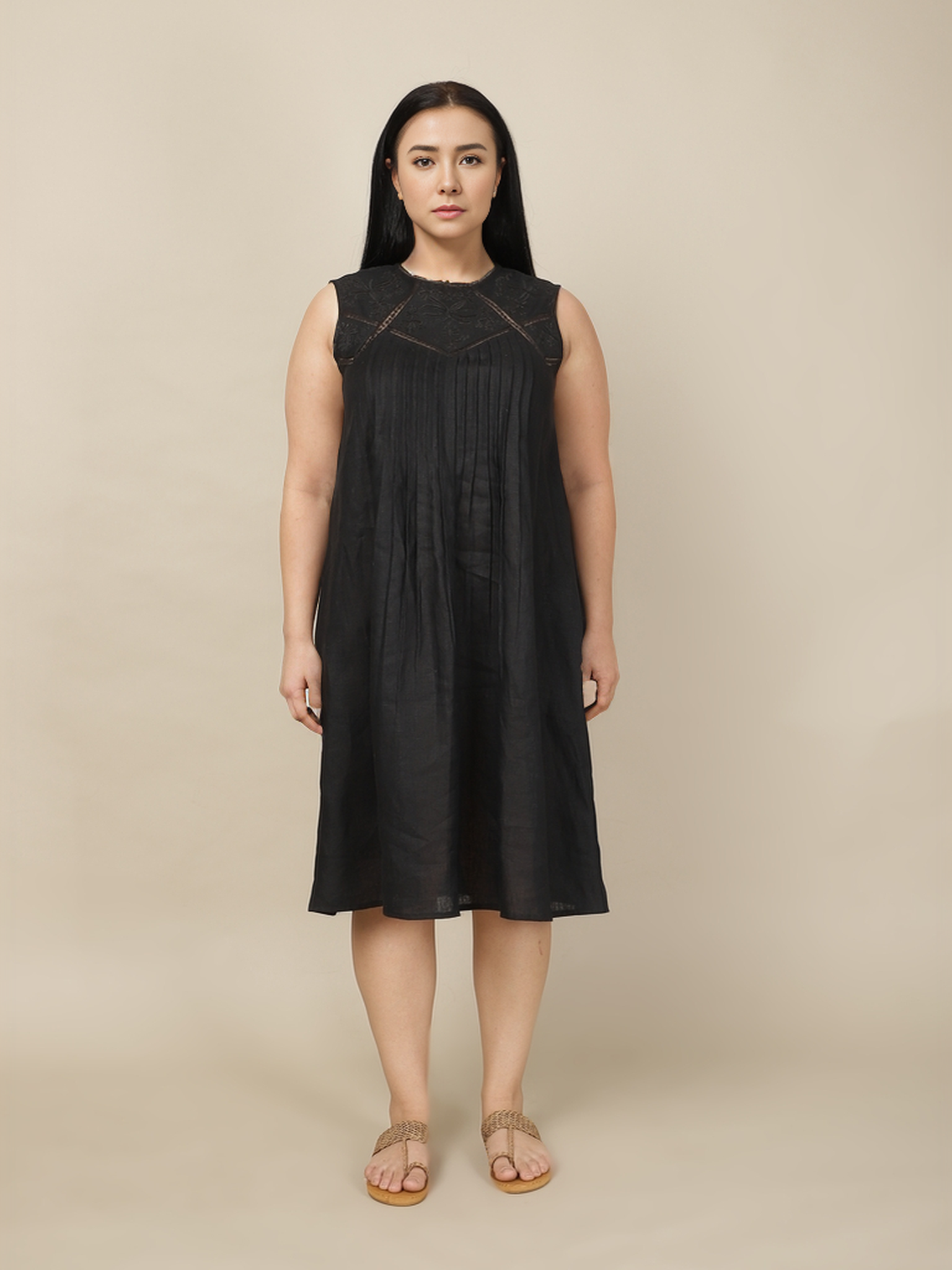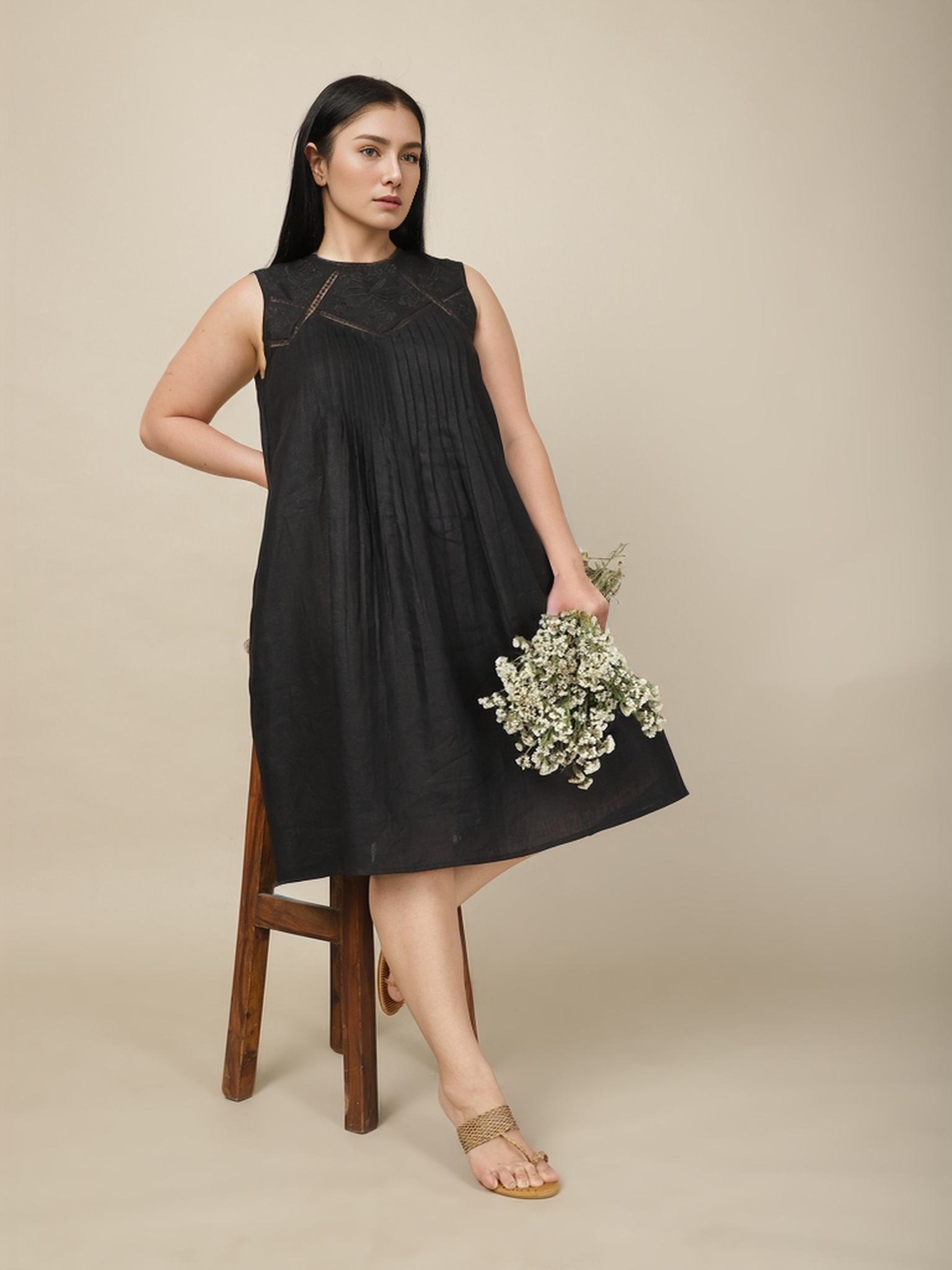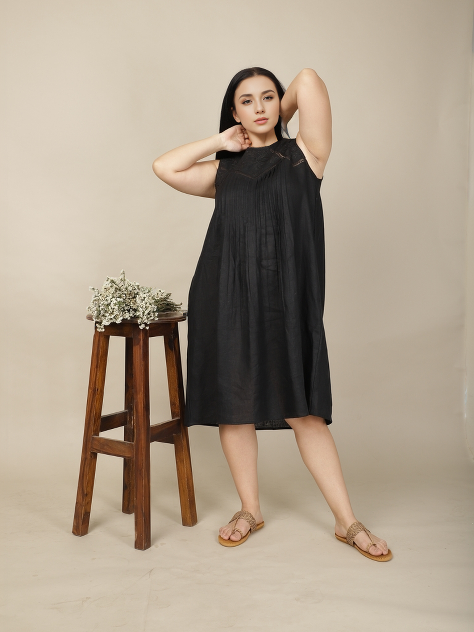 In delicate lace-trimmed linen, the Lace Reverie Black dress brings elegance to the hottest summer afternoon.Thoughtful touches like a unique lace trim detail on the yoke accented with floral embrodiery and a pretty back detail, makes it special.