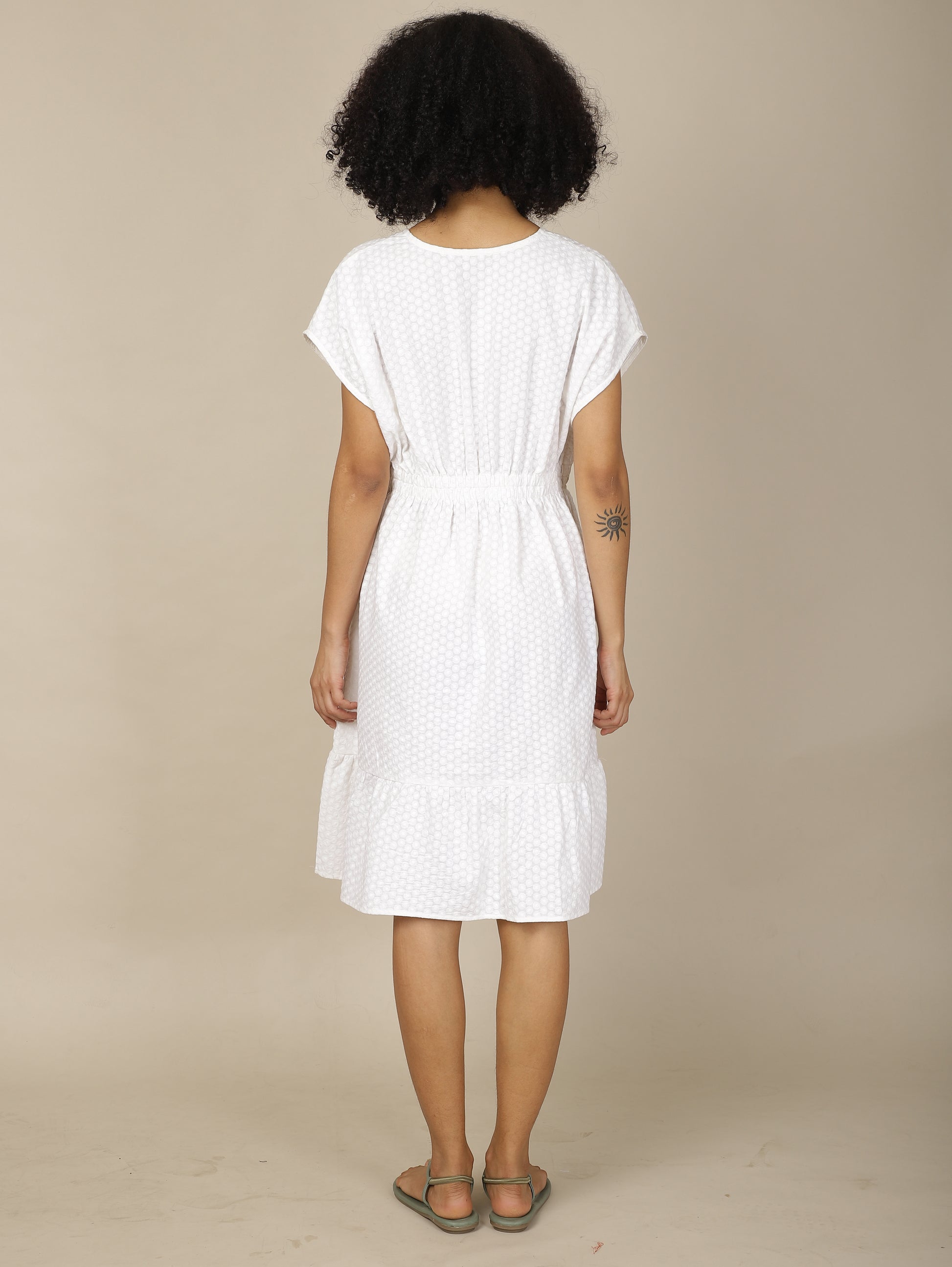 White Embroidered Cosmos Cotton Dress