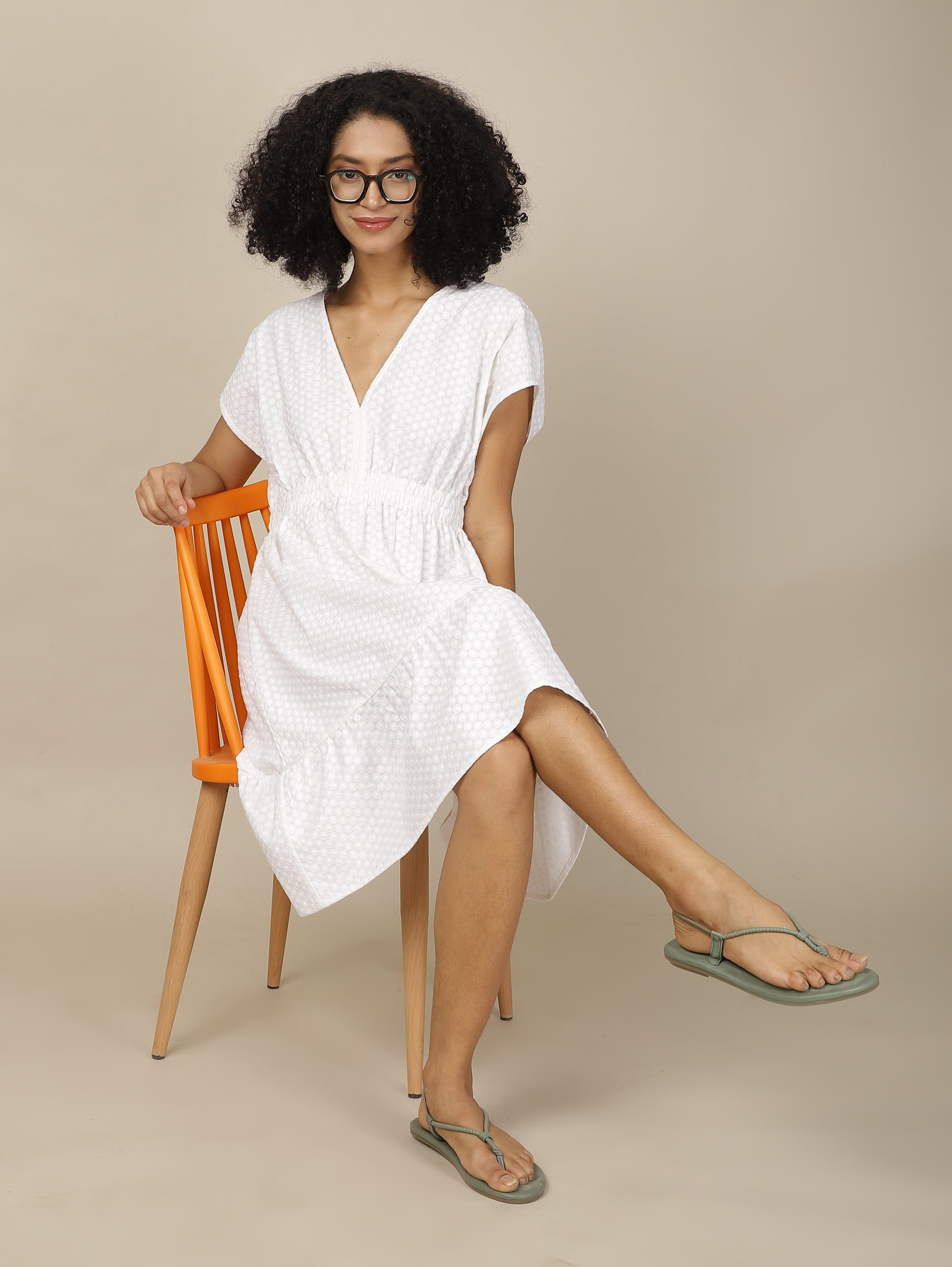 With clinched waist, the Lace Reverie Dress is an easy breezy dress to wear. All over embroidered design adds elegance to this pristine white dress.